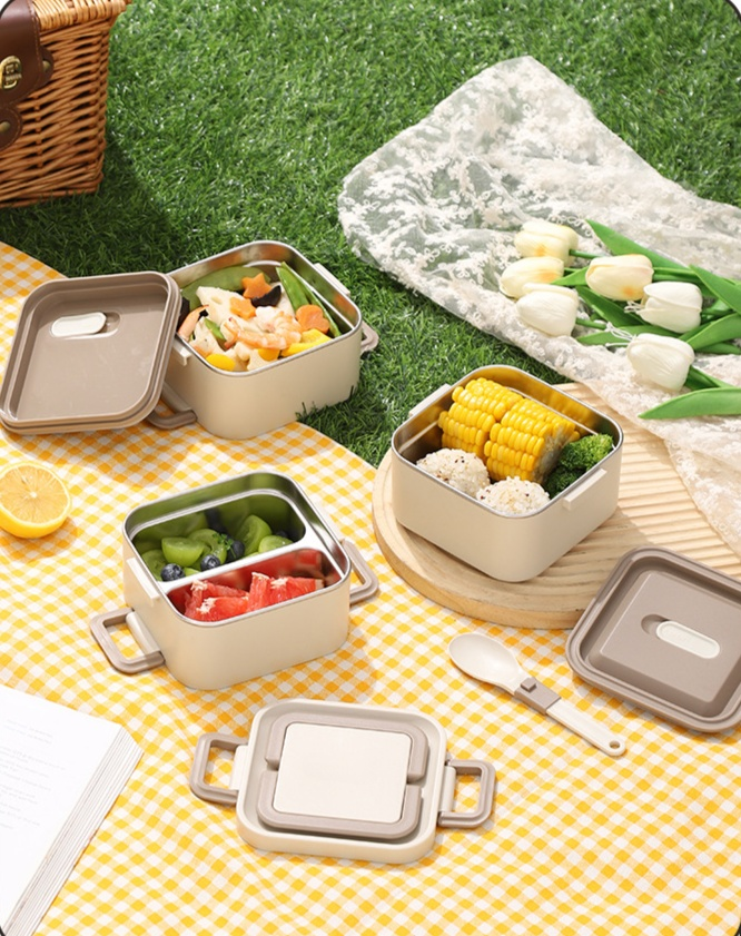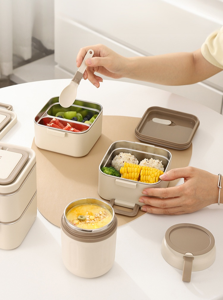 스테인리스 스틸 도시락 상자 휴대용 식품 보관 용기 칸막이 도시락 상자 전자레인지용 학생 도시락 상자 단열 식기류